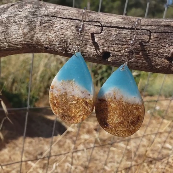 Carry the ocean with you wherever you go with these handmade beach-inspired teardrop earrings. Crafted in UV resin, these earrings showcase a tranquil shoreline—golden sand, gentle white foam, and inviting blue water reminiscent of a peaceful, sunlit beach. The layered design gives each earring a natural depth and texture, making them a perfect accessory for beach lovers or anyone who craves the soothing vibes of the sea. Lightweight and comfortable, they’re finished with stainless steel hooks, perfect for all-day wear—even for sensitive ears.