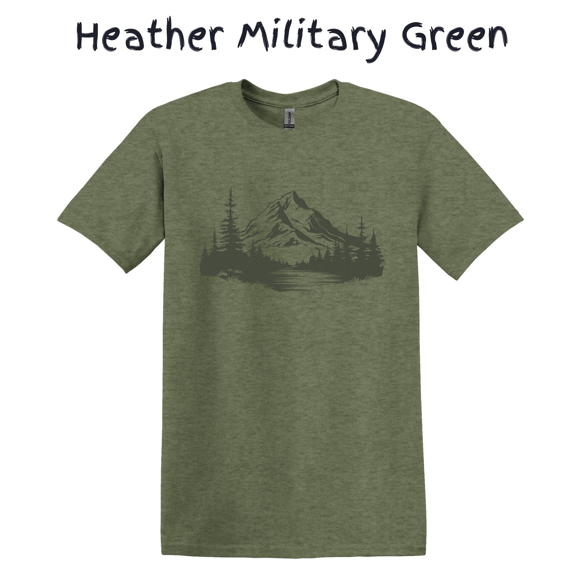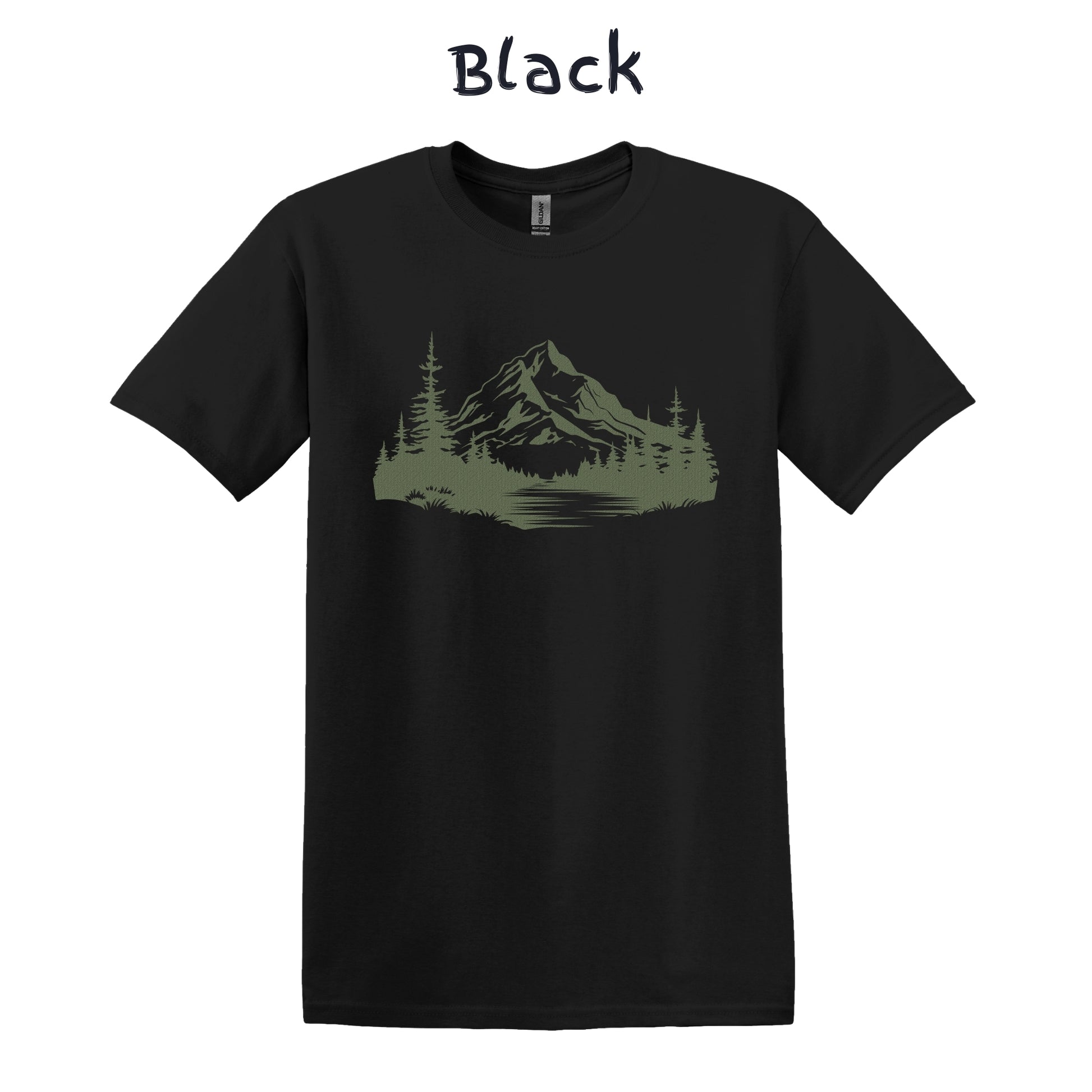 Celebrate your passion for the great outdoors with this one-of-a-kind mountain graphic t-shirt. Featuring a beautifully textured green design of a towering mountain, surrounded by trees and flowing alongside a winding river, it’s the perfect blend of rugged and artistic. This unisex tee is designed for both men and women, making it a versatile addition to any adventure lover’s wardrobe. Whether you’re hiking through pine-filled trails, setting up camp under the stars, or simply bringing a little nature into your everyday life, this shirt carries those hiking, camping, and adventure vibes wherever you go. Soft, comfortable, and made for exploring—wear it on your next trip or as a daily reminder of the wild places you love.