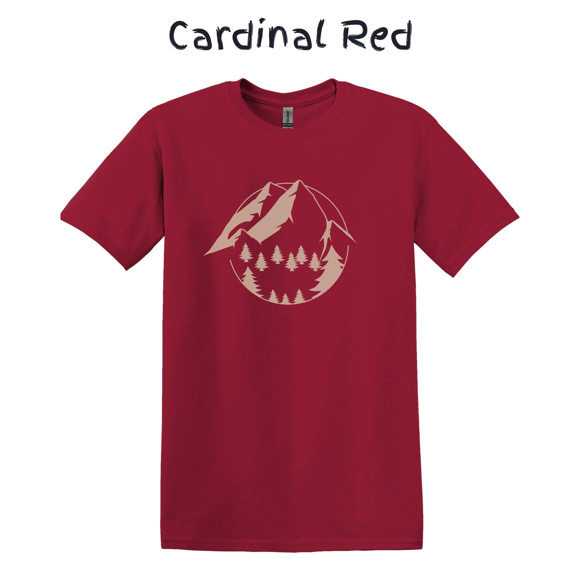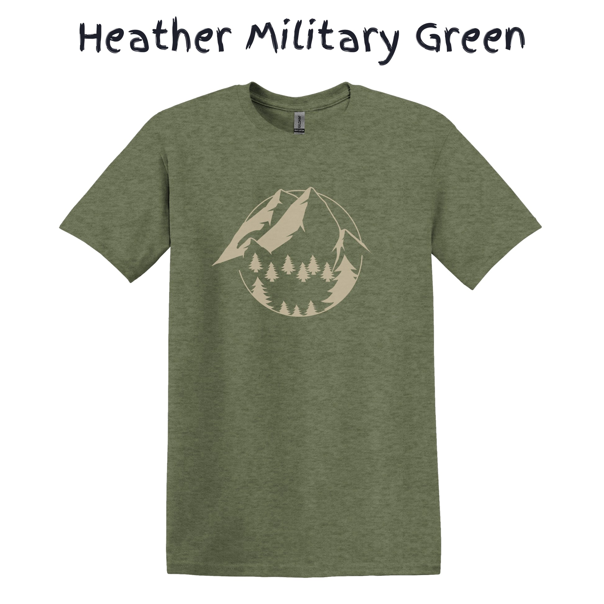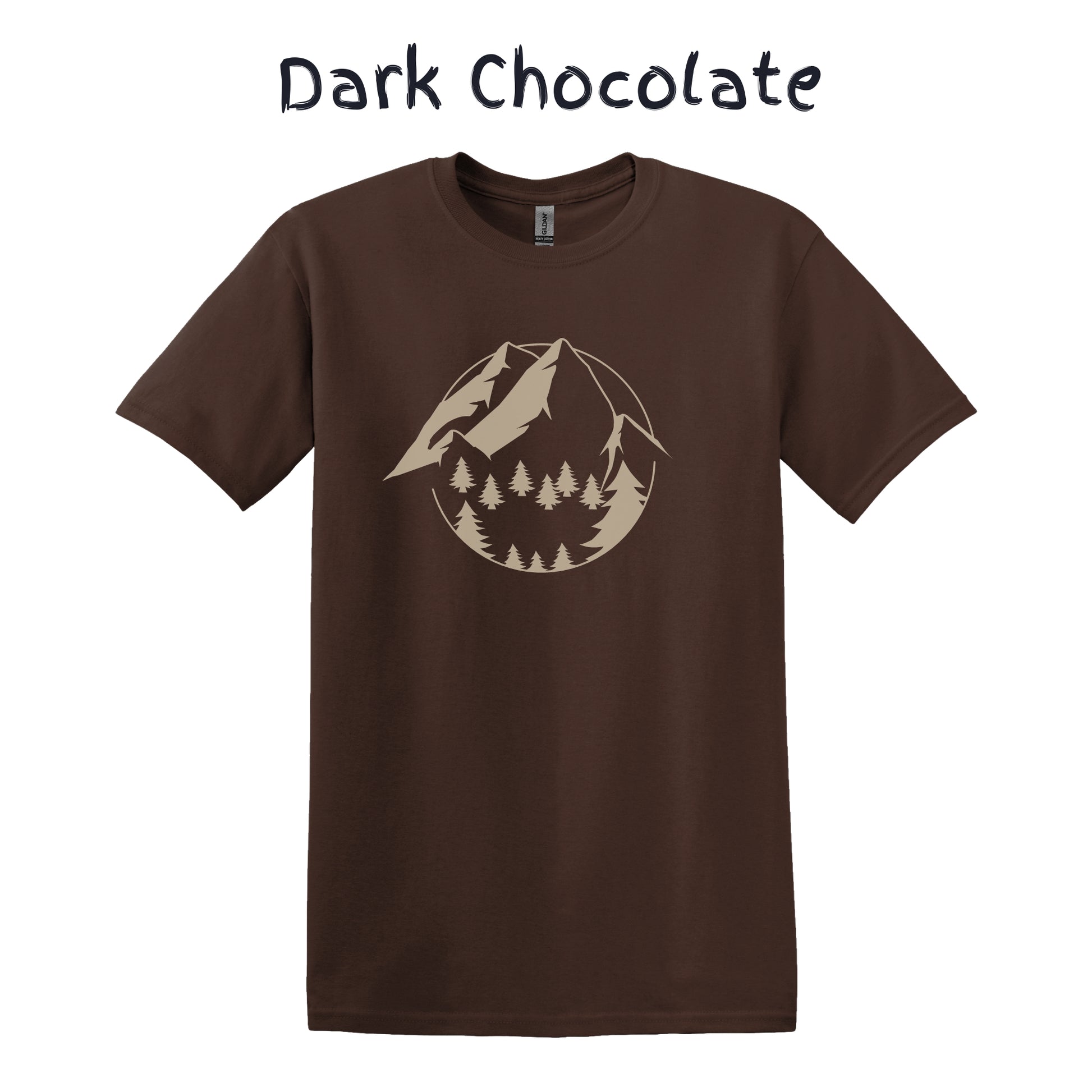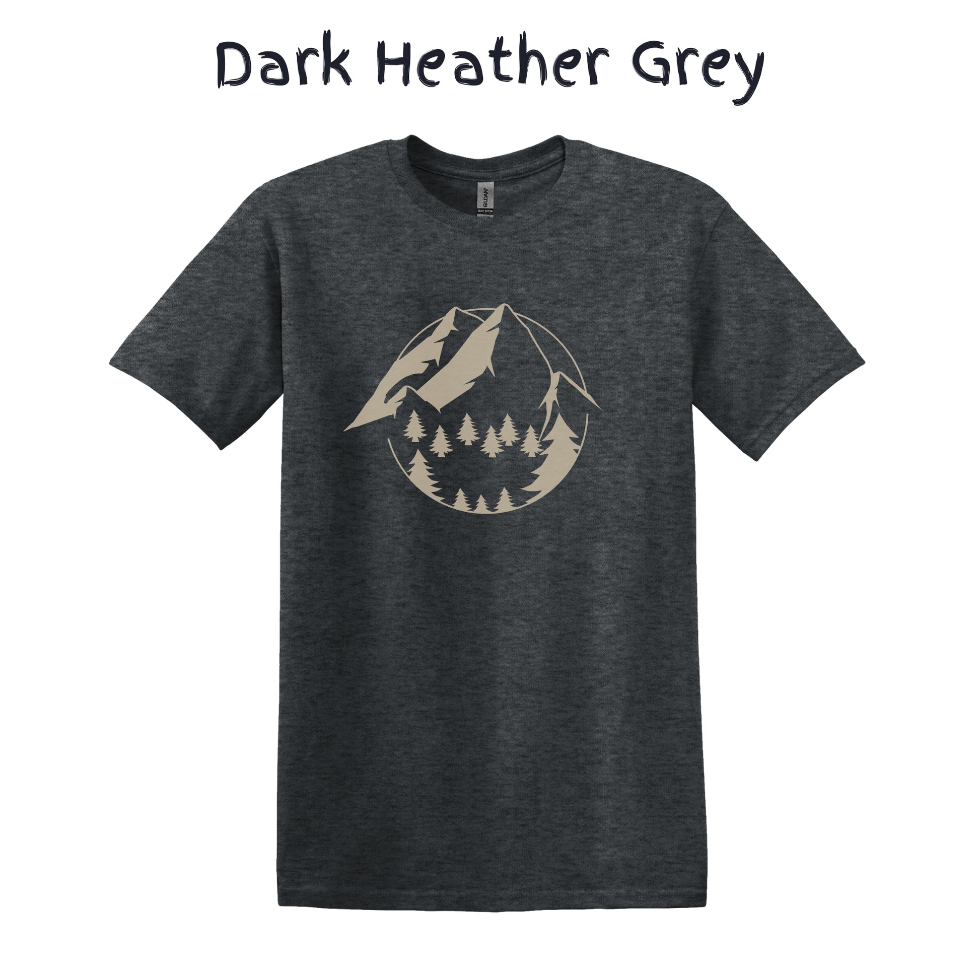 Mountain Tshirt Mens Hiking Shirt Camping Graphic Tee - Beige Mountain with Trees in a Circle